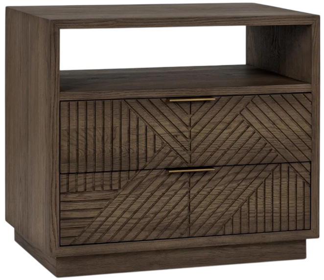Designed with style and built for function, this nightstand brings sharp, sophisticated design into any space and offers two spacious drawers of storage. Modern geometric carvings, vintage brass pulls, and the classic look of oak dress up a minimalist silhouette, creating a bold look that suits any decor.Read More