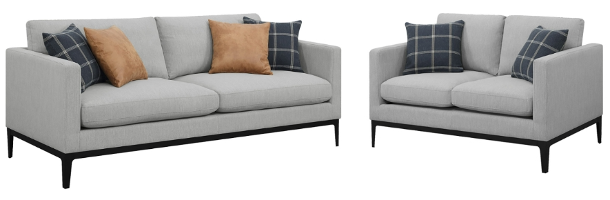 Inspire a retro feel with this stunning two-piece living room set. Complete with a sofa and loveseat, the sleek silhouette boasts a mid-century modern-inspired feel. In a warm grey finish, the light hues in the silhouette highlight the rounded edges and straight lines. The simple and smooth frames create a structured effect.Read More