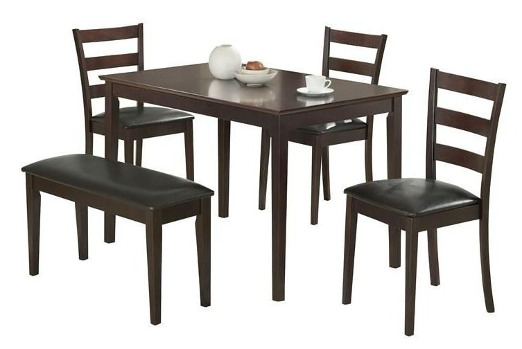 Set includes: One (1) dining table, three (3) dining chairs and one (1) bench