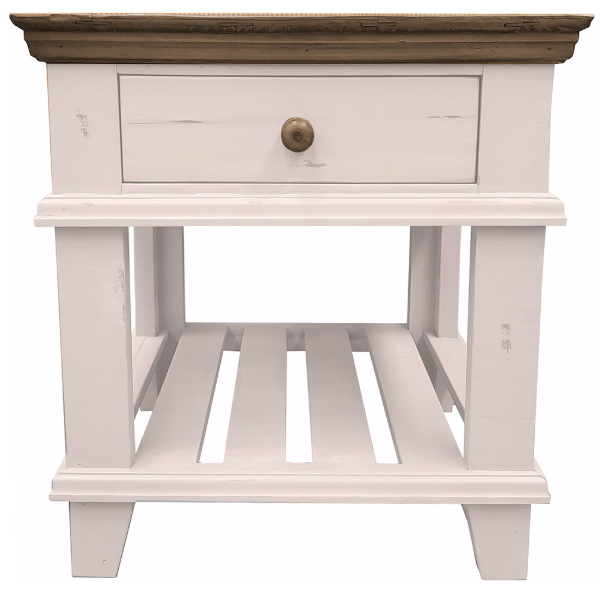 The Horizon Home® Miramar White End Table with Weathered Brown Top showcases coastal charm with a touch of rustic elegance. Its two-tone finish features a crisp white base and a weathered brown top, offering a fresh, breezy look perfect for relaxed, stylish spaces.Read More