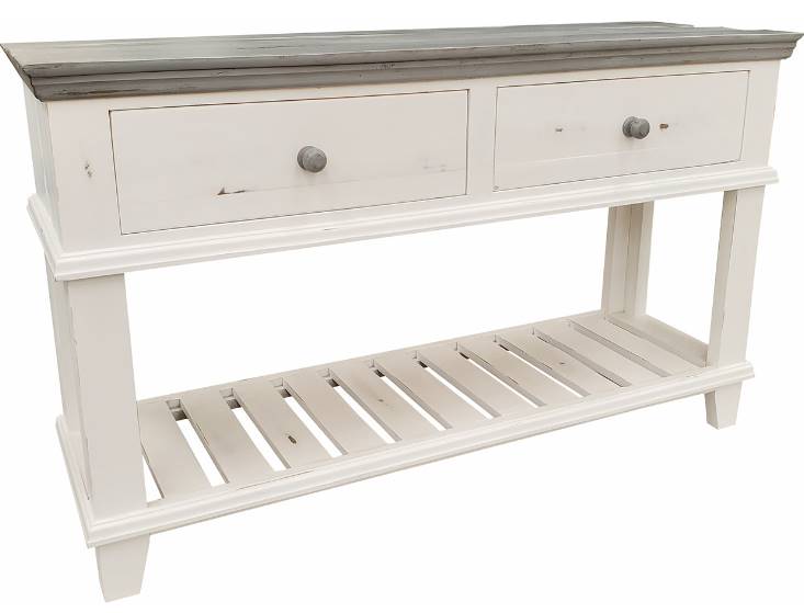 The Horizon Home® Miramar White Sofa Table with Weathered Brown Top showcases coastal charm with a touch of rustic elegance. Its two-tone finish features a crisp white base and a weathered brown top, offering a fresh, breezy look perfect for relaxed, stylish spaces.Read More
