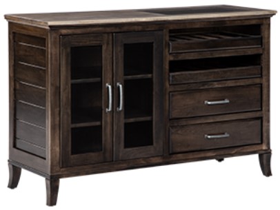 The Castlebar Server includes standard with two glass doors. Shelving behind the doors includes two adjustable wood shelves, no divider.Read More