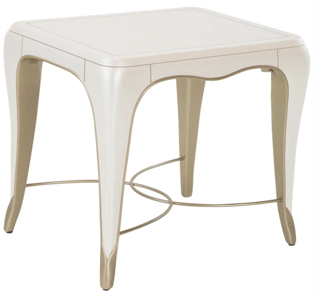 Find movement in the smallest of places. The London Place creamy pearl end table features gentle curves and slopes, and a stunning place for your favorite decor. Tabletop features a painted platinum design and cabriole legs.Read More