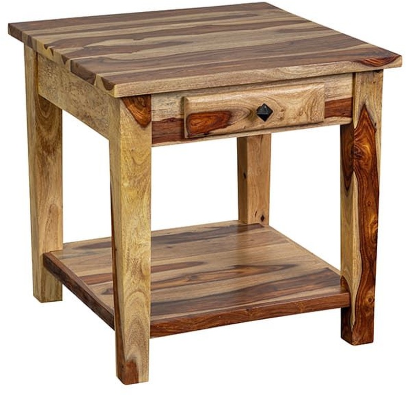 The Tahoe End table is a beautiful living room accent piece. Made from solid sheesham wood, it features one drawer for storage (perfect for remotes) and a shelf for keeping your books and magazines. Coordinate with our Tahoe Coffee Table.Read More