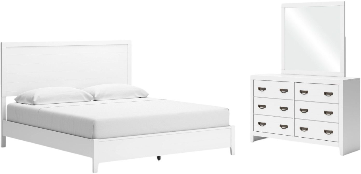 Add a bright touch to your space with the Binterglen mirror. Featuring a clean white finish and classic lines. This bedroom mirror is made with solid wood; it pairs beautifully with other items in the series to make a dresser and mirror, enhancing any bedroom with charm, functionality, and timeless style.