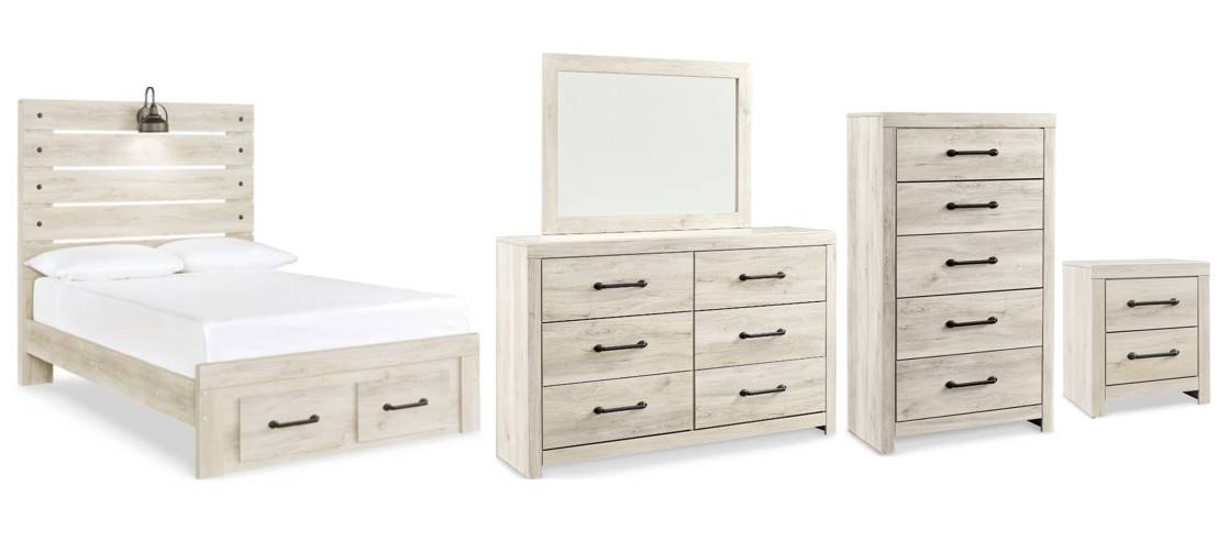 Signature Design by Ashley® Cambeck 5-Piece Whitewash White Full Storage Panel Bed Set