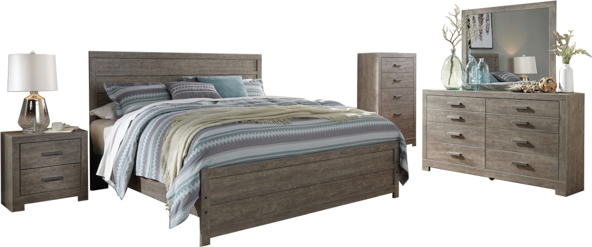 *Queen panel bed (headboard, footboard and rails), 6-drawer dresser with mirror, 5-drawer chest and 2-drawer nightstand only, all other products are sold separately. Images may not reflect actual size. Furniture color in images may differ in person; see retailer for actual finish.