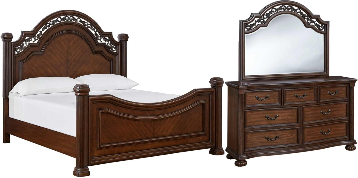 Lavinton Queen Poster Bed with Mirrored Dresser