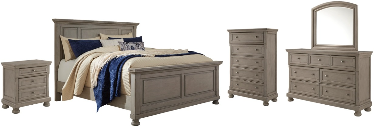 Satisfying your taste for tradition, this 5-piece bedroom set sports serene sophistication. Forever classic design details—inlaid panels, silvertone patina hardware and bun feet—are so easy to love. Burnished light gray finish elevates the look with modern sensibility.Read More