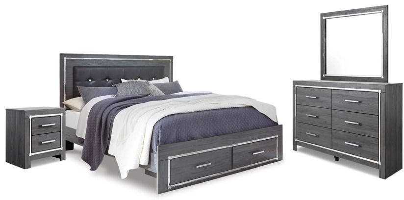 Signature Design by Ashley® Lodanna 4-Piece Gray King Storage Panel Bed Set