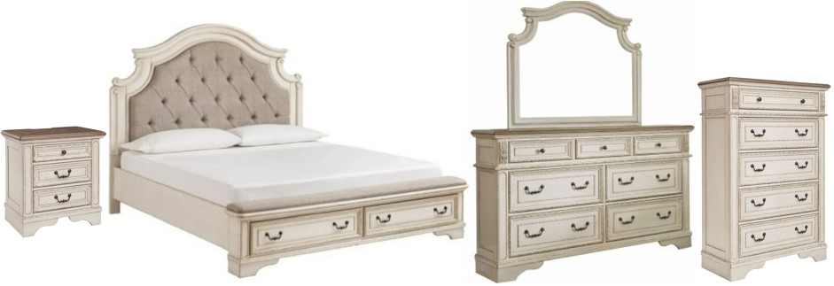 Elevating the art of traditional cottage styling, the Realyn dresser is your dream bedroom retreat realized. Antiqued two-tone finish blends a heavily distressed chipped white with a natural wood tone top for added charm. Assembly required for this product.