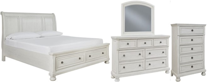 Signature Design by Ashley® Robbinsdale 4-Piece Antique White Queen Sleigh Storage Bed Set