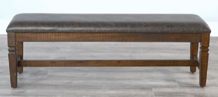 Elevate your dinning room with this bench. This Homestead Bench with cushion seat features a Tobacco leaf finish, crafted with mahogany solids and veneers. The perfect bench to bring a bold and striking update to your dinning room.Read More